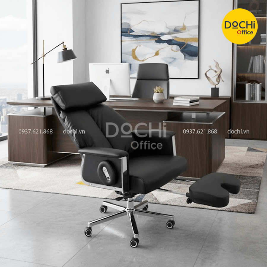 Ghế giám đốc được tạo hình với form dáng bề thế, đường nét mềm mại nhưng chắc chắn, tạo cảm giác uy quyền và sang trọng ngay khi bước vào không gian làm việc.