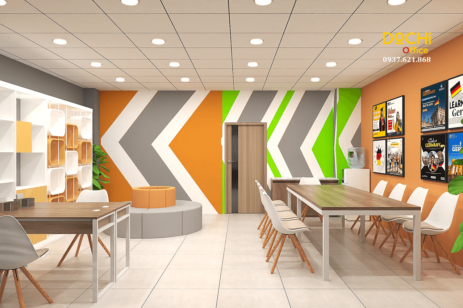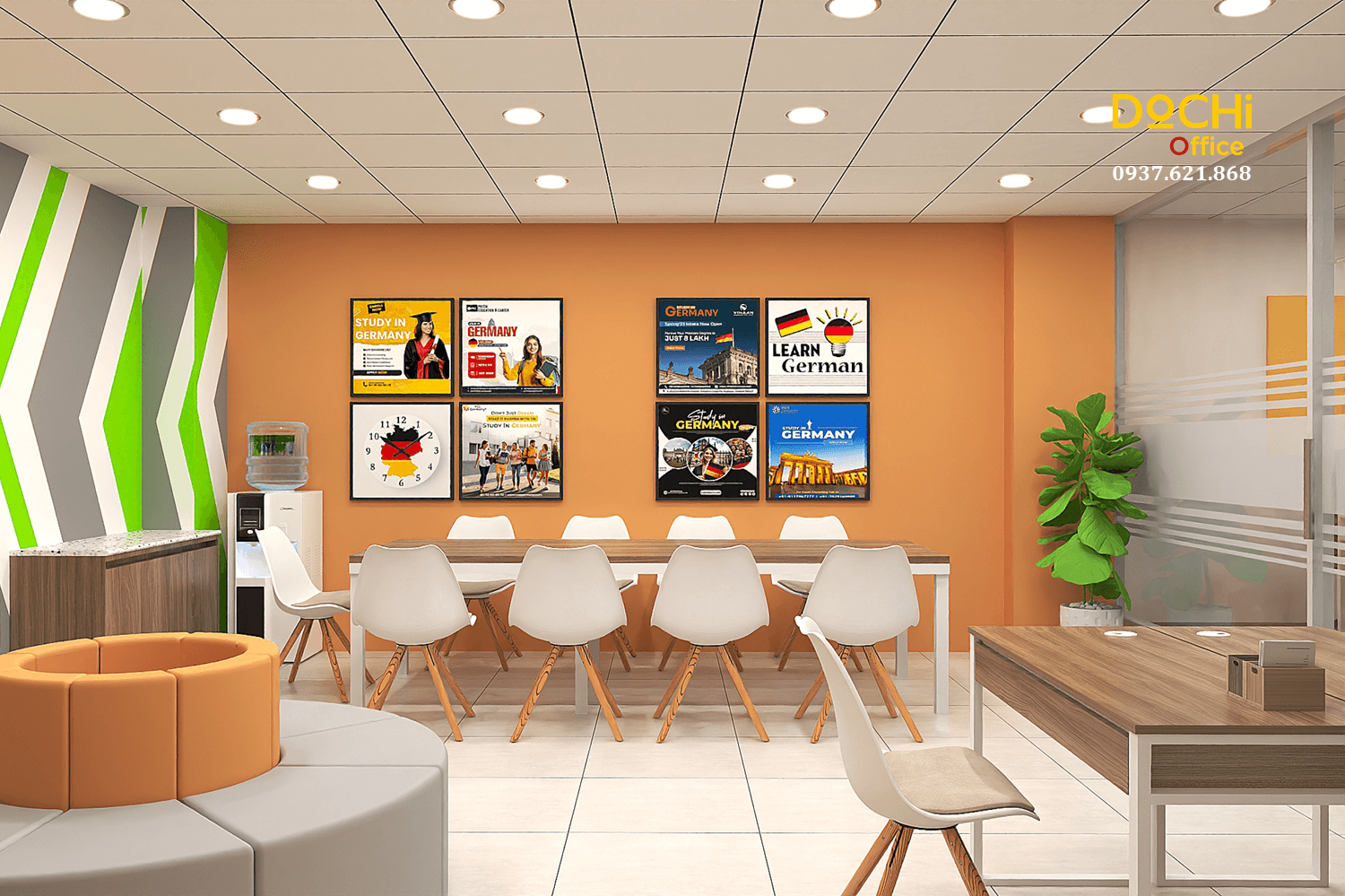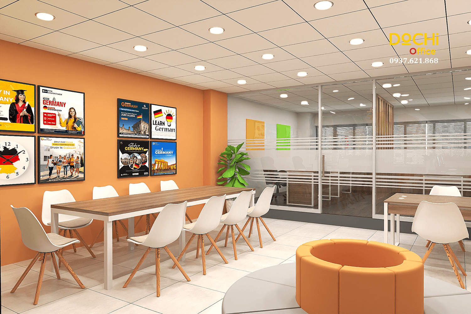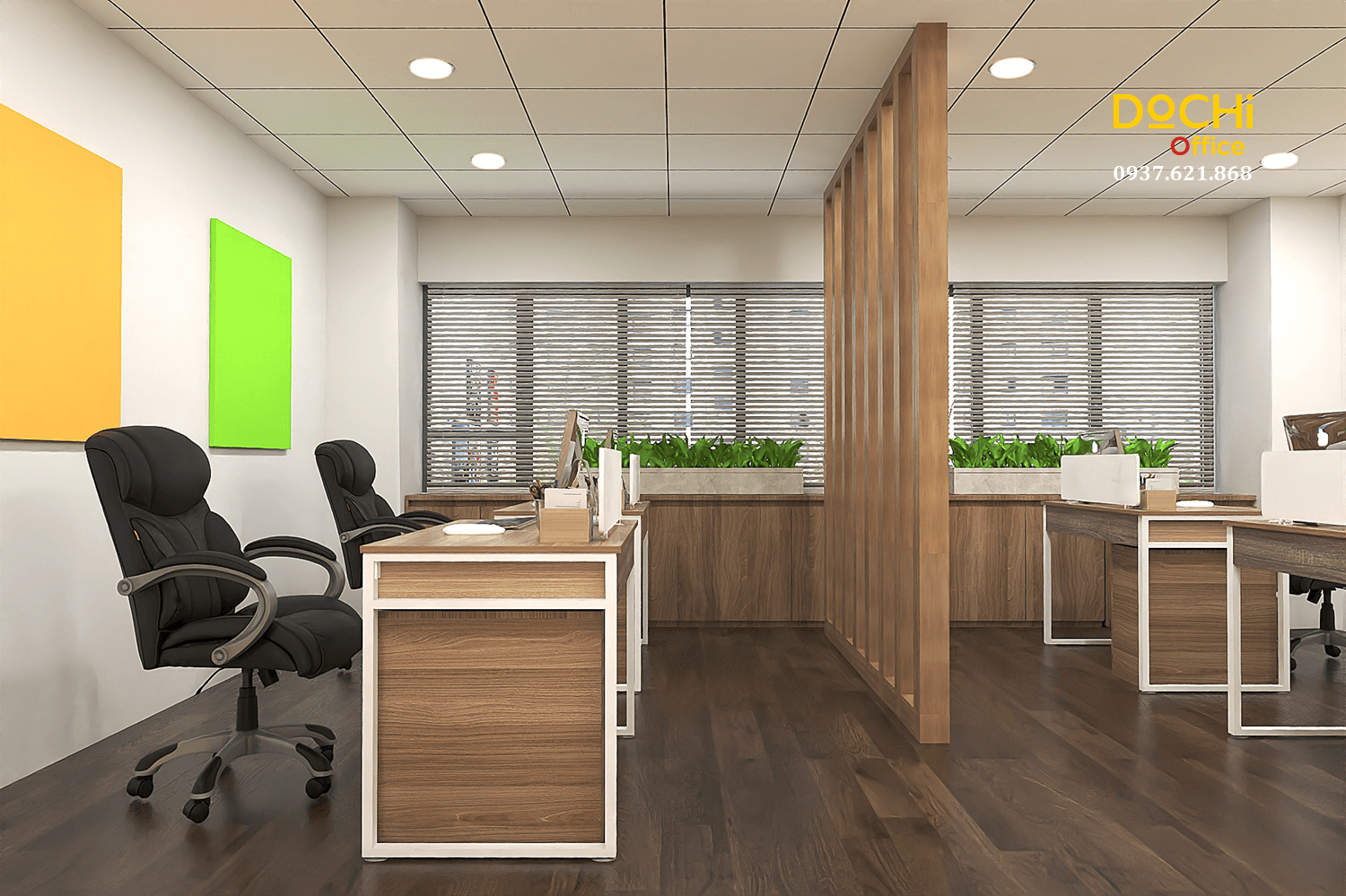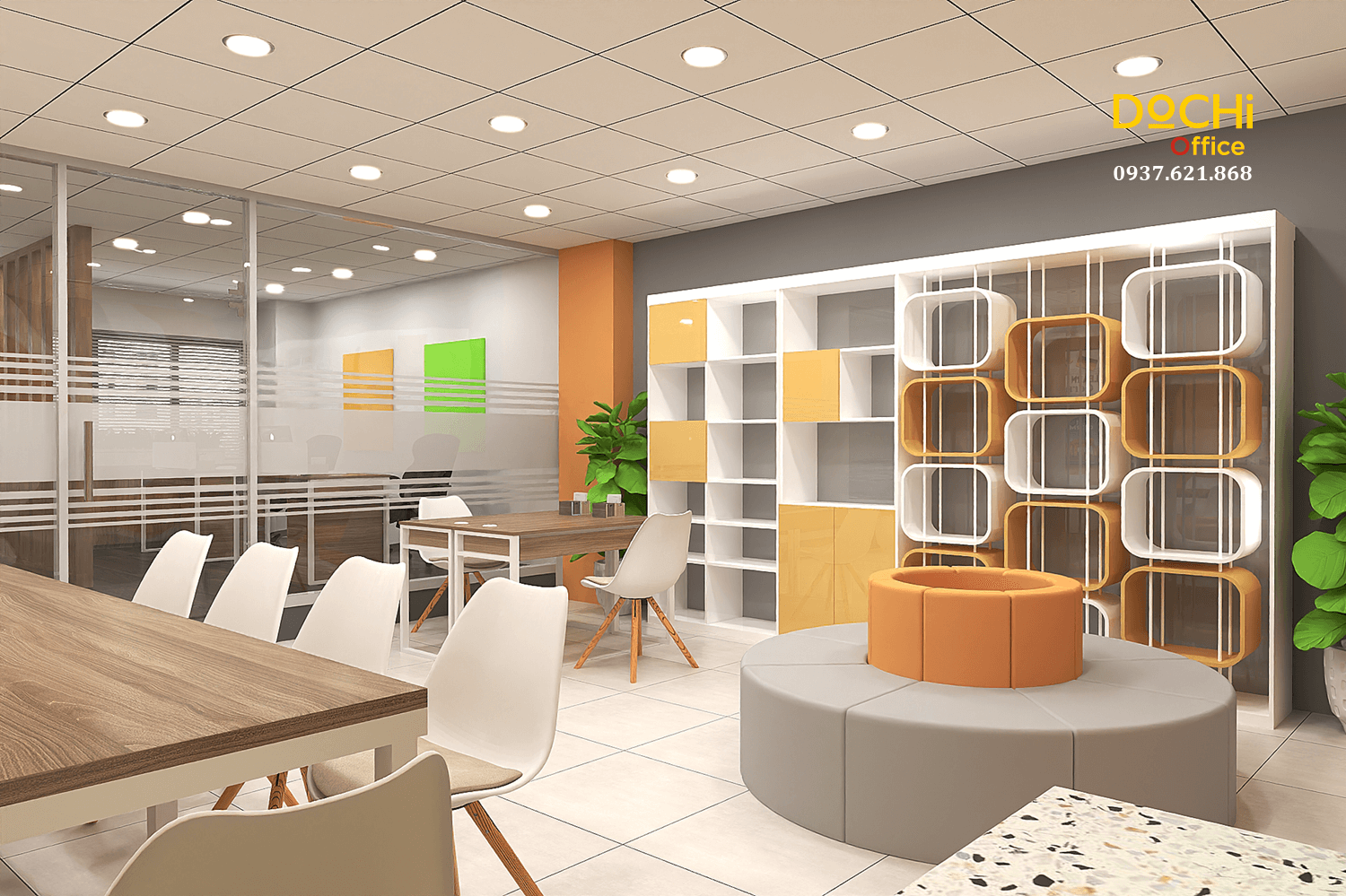 Đội ngũ chuyên nghiệp: DOCHI OFFICE mang đến những thiết kế đồng bộ từ quầy lễ tân, khu làm việc, phòng họp đến phòng giám đốc.